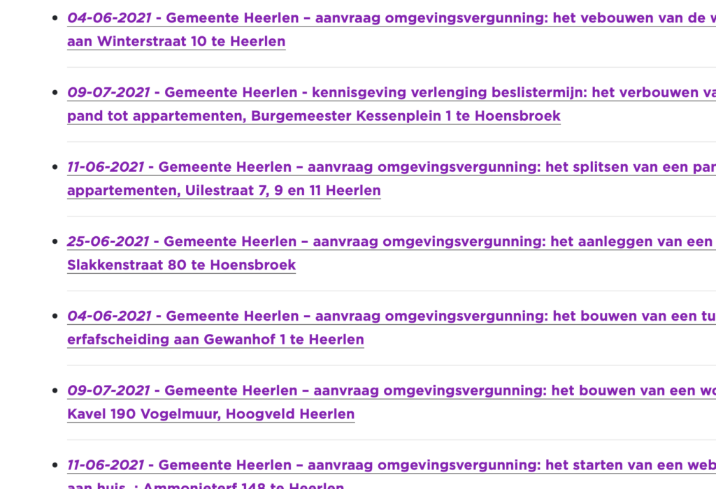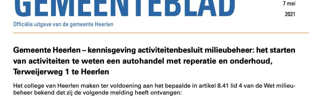 Normaliter valt makkelijk en inzichtelijk via Heerlen.nl in te zien welke gemeentelijke bekendmakingen er zijn. Op volgorde van datum stond alles netjes in een rij. Die chronologische volgorde is echter al een hele tijd geschiedenis. Nu zoek je er ‘tot je een ons weegt’ in de hoop te vinden wat je zoekt. Nadat wij, enige tijd geleden, …
